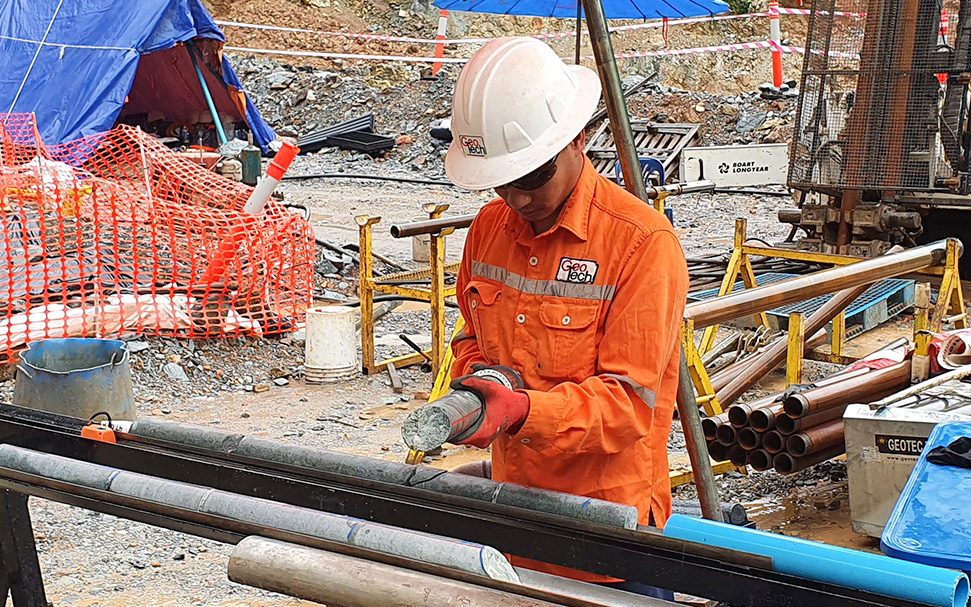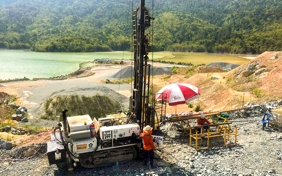 Khảo sát địa chất công trình cho đập tràn tại dự án Ban Huoi Xay. Công việc bao gồm khoan khảo sát lấy mẫu nguyên dạng và làm thí nghiệm hiện trường trong hố khoan...