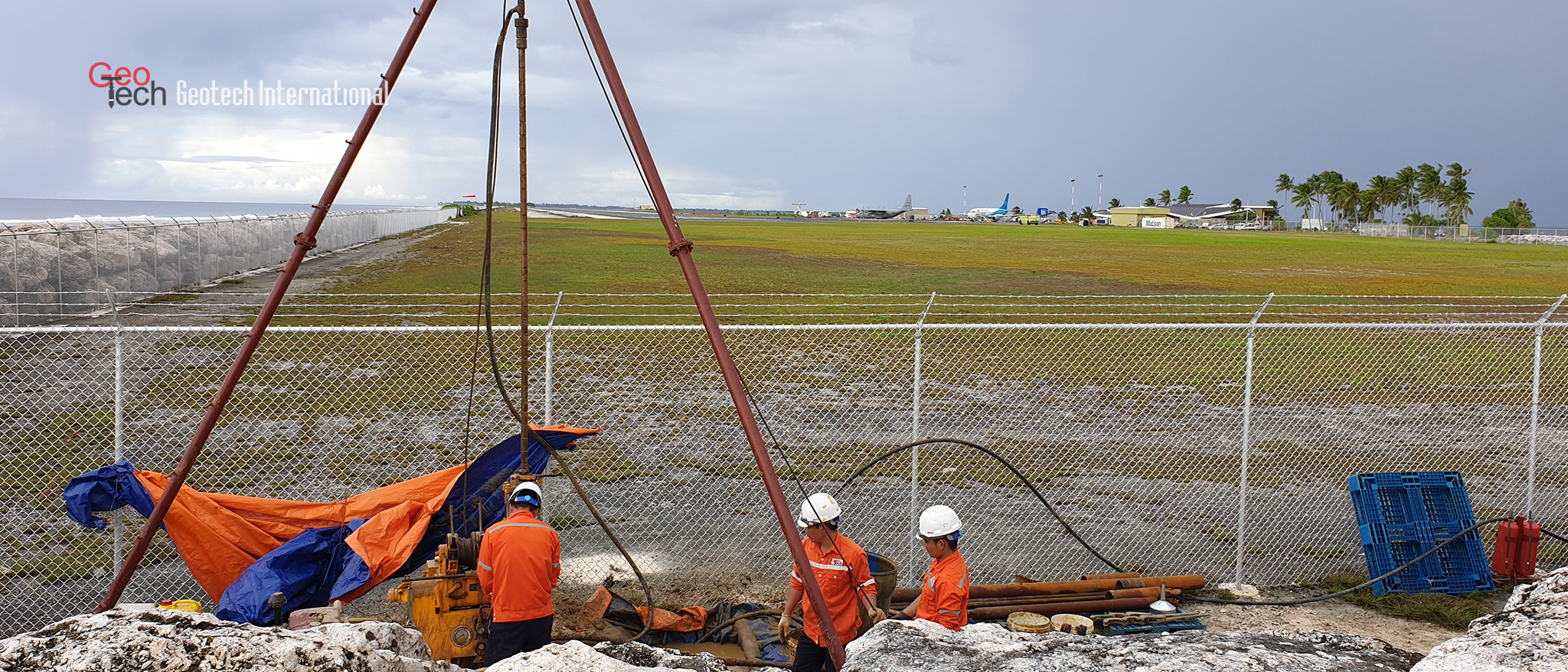 Geotech International to provide soil borehole drilling, core logging, SPT testing, undisturbed soil sampling, and in-situ permeability testing for geotechnical boreholes drilled for the JICA Water Reservoir Improvement Project at Majuro Atoll, the Republic of the Marshall Islands.