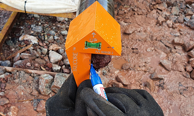 Geotechnical logging of core. Core orientation mark with TruCore UPIX.