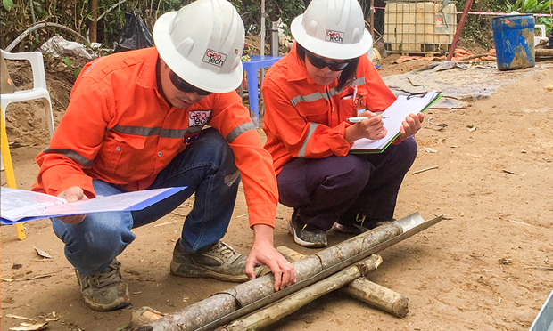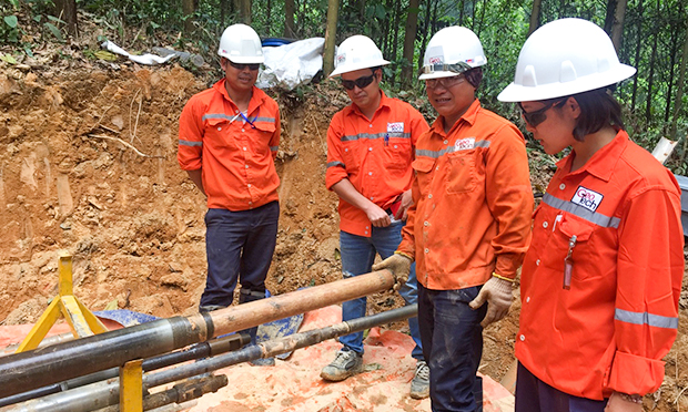 Core sample is being logged for site investigation at the Nui Phao Mining